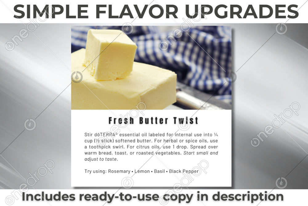 Stir a doTERRA essential oil labeled for internal use into ¼ cup (½ stick) softened butter.