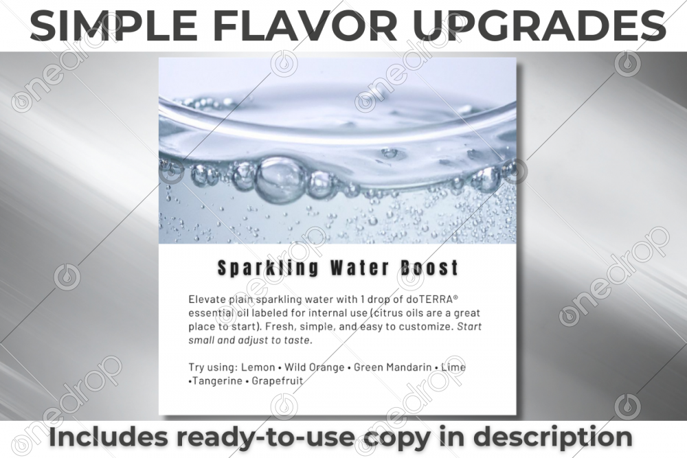 Add 1 drop of doTERRA essential oil labeled for internal use directly to plain sparkling water.