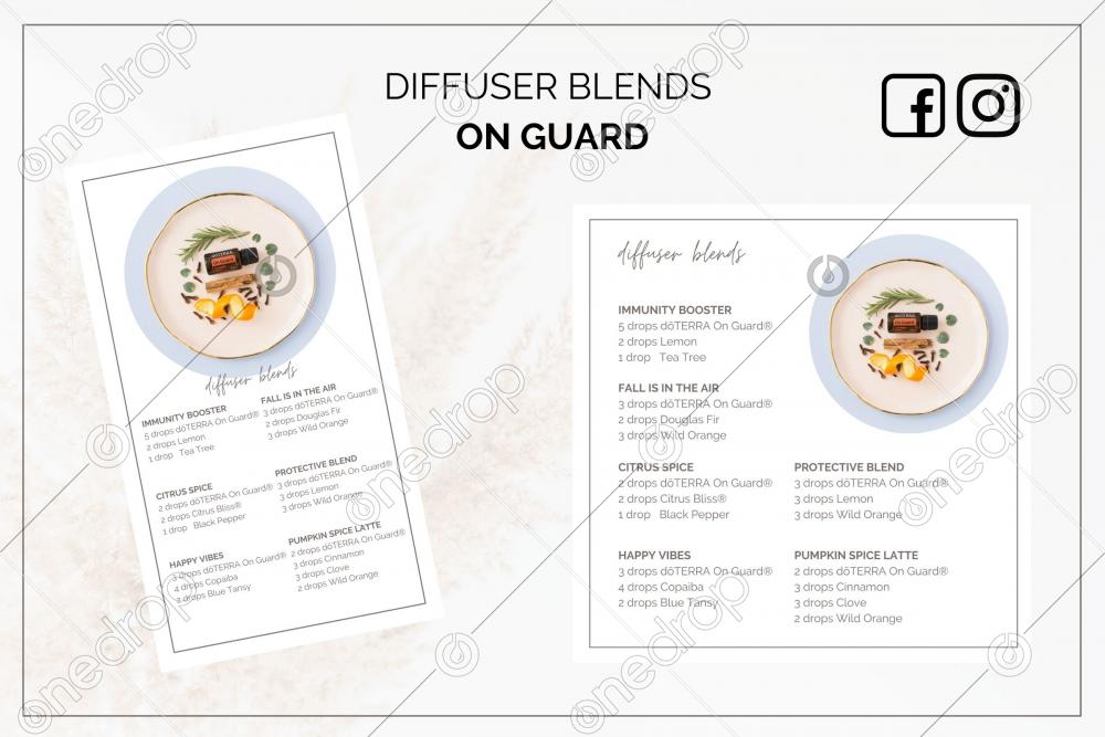 Six dōTERRA On Guard diffuser blend recipes, social media image