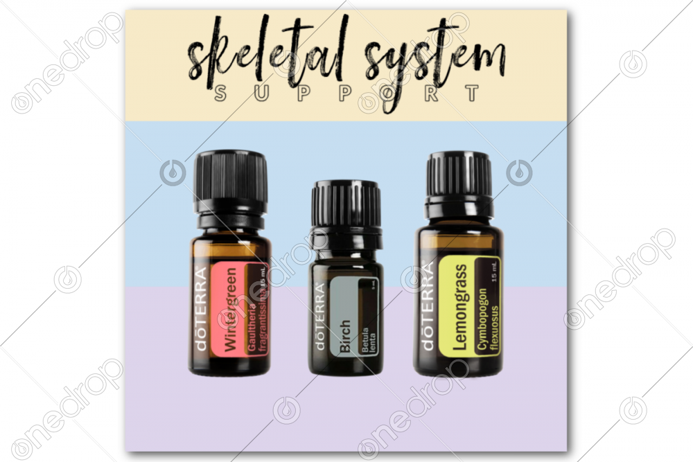 Wintergreen and Birch are good examples of oils that can be used to support the skeletal system. Additionally, Lemongrass supports the connective tissue.