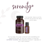 I want to call this product “Sleep in a Bottle.” The Serenity® blend and the capsules are perfect for deep, restful sleep. During sleep, the body is hard at work rebuilding and maintaining itself. So why not support it using the doTERRA Serenity® line (essential oil blend + capsules) in your night routine?