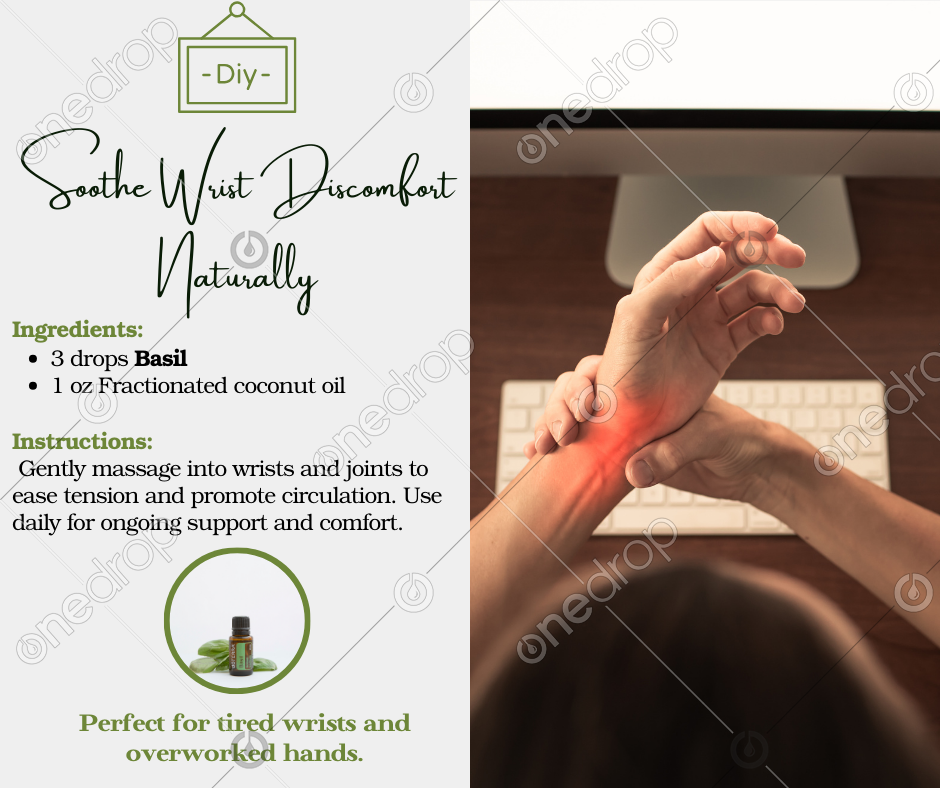 Find relief from Carpal Tunnel discomfort with this simple, natural Basil massage blend! Perfect for tired wrists and overworked hands.
