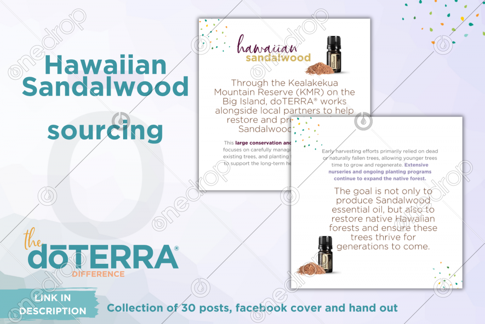 This collection of 30 posts, Facebook cover and handout takes a closer look at the stories behind the oils. From sourcing locations around the world to simple blend ideas you can try at home, it highlights the connection between essential oils, the communities who grow them, and the ways we can give back.
