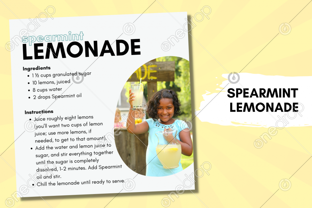 - Add the water and lemon juice to sugar, and stir everything together until the sugar is completely dissolved, 1-2 minutes. Add Spearmint oil and stir.