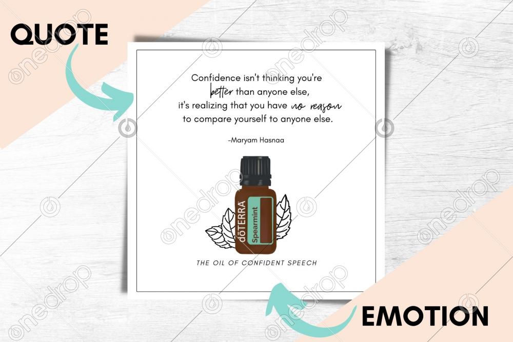 Spearmint Quote + Emotion. Includes quote along with emotional benefit of oil - Oil of Confident Speech.