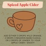 Recipe to spice up your apple cider featuring wild orange, cinnamon bark, cassia, and ginger oils.