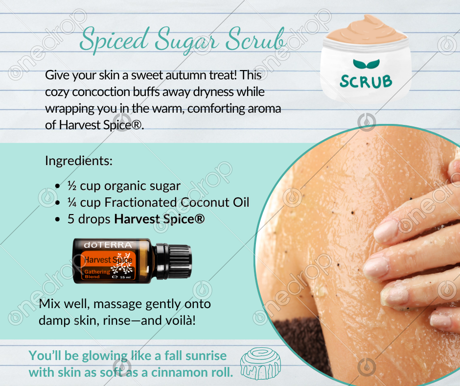 Give your skin a sweet autumn treat! This cozy concoction buffs away dryness while wrapping you in the warm, comforting aroma of Harvest Spice®.
