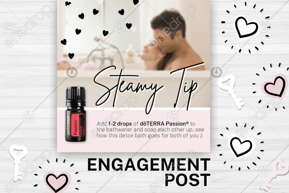 - Features a "Steamy Tip" using the dōTERRA Passion Blend; "Add 1-2 drops to bathwater and soap each other up... see how this detox bath goes for both of you ;)"