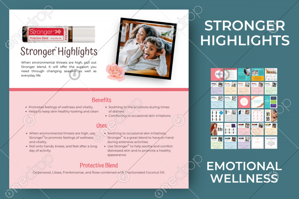 This graphic is part of the Emotional Wellness Collection with the Done-For-You-Copy. The topics include mood & oils, AromaTouch® Technique, and highlights of the Kid’s Collection and Emotional Aromatherapy® Kit essential oils. (The Done-For-You-Copy is downloaded separately). All the graphics for the collection are below!