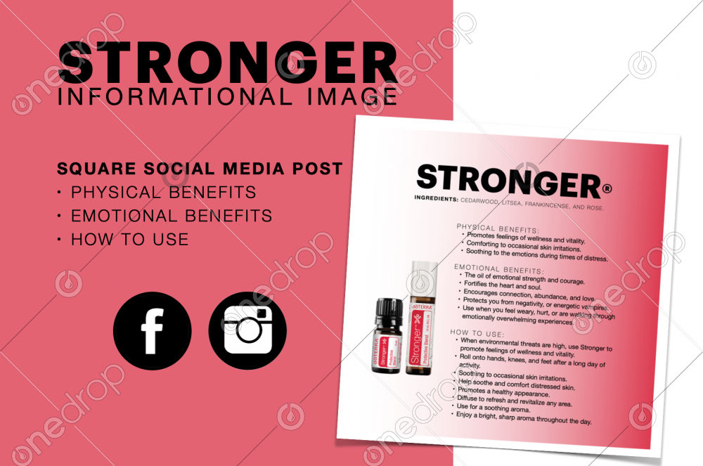Square Social Media Image with Physical Benefits, Emotional Benefits + How to Use for Stronger Essential Oil