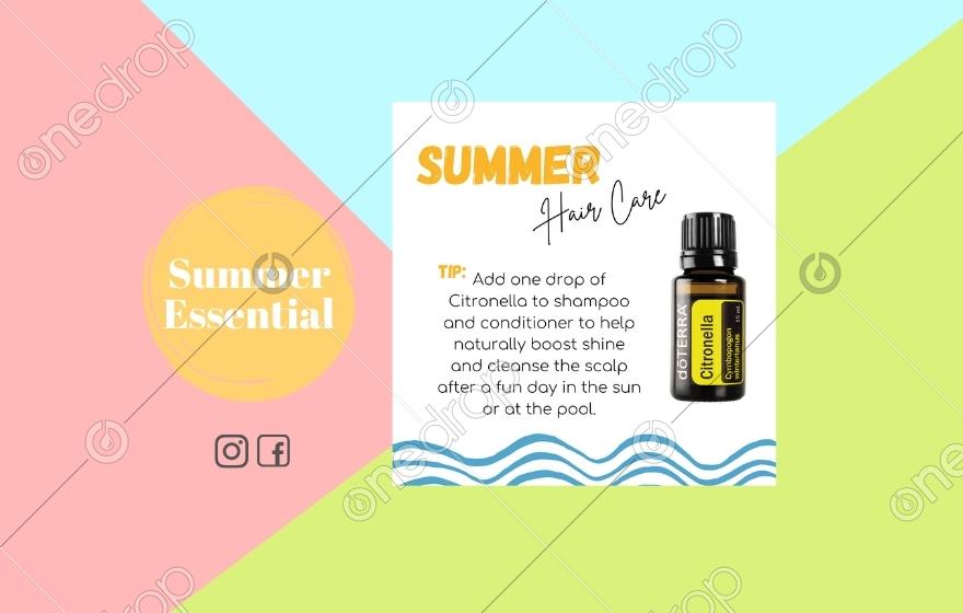Summer essential hair care beauty hack. A wonderful remedy to use after a day in the pool, at the lake, or at the beach. This graphic is ideal for social media posting and includes a matching stories graphic (FB, Instagram, etc.)
