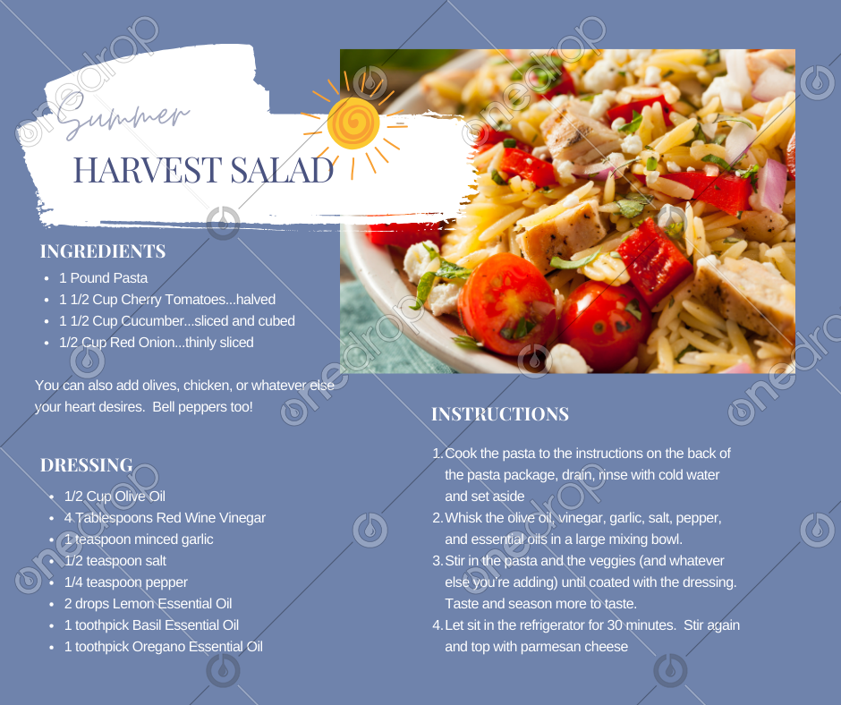 Summer Pasta Salad made with essential oils