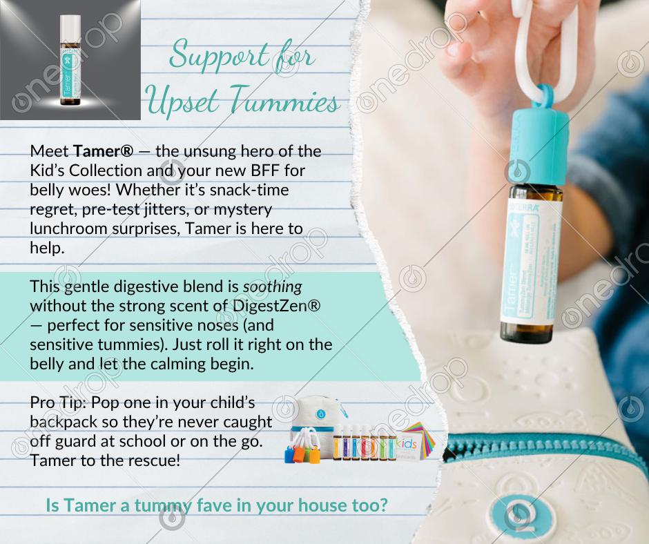 Meet Tamer — the unsung hero of the Kid’s Collection and your new BFF for belly woes! Whether it’s snack-time regret, pre-test jitters, or mystery lunchroom surprises 🍕😬, Tamer is here to help.