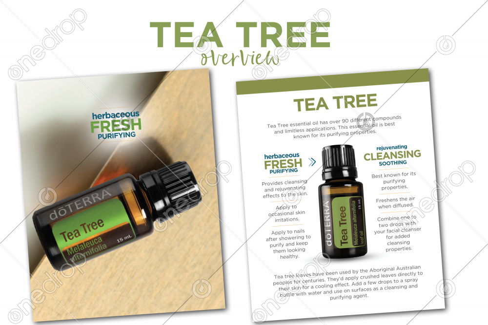 Tea Tree essential oil is best known for its purifying properties. It can cleanse and purify the skin and nails and support a healthy-looking complexion. Tea Tree oil can soothe occasional skin irritations and freshen the air when diffused.
