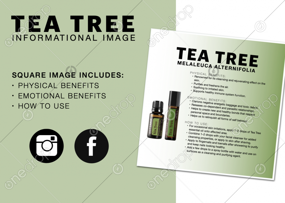 Square Social Media Image with Physical Benefits, Emotional Benefits + How to Use for Tea Tree Essential Oil