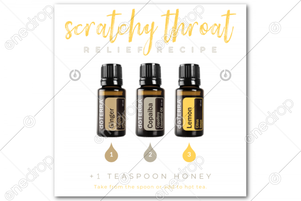 This square graphic features a recipe for temporary scratchy throat relief.