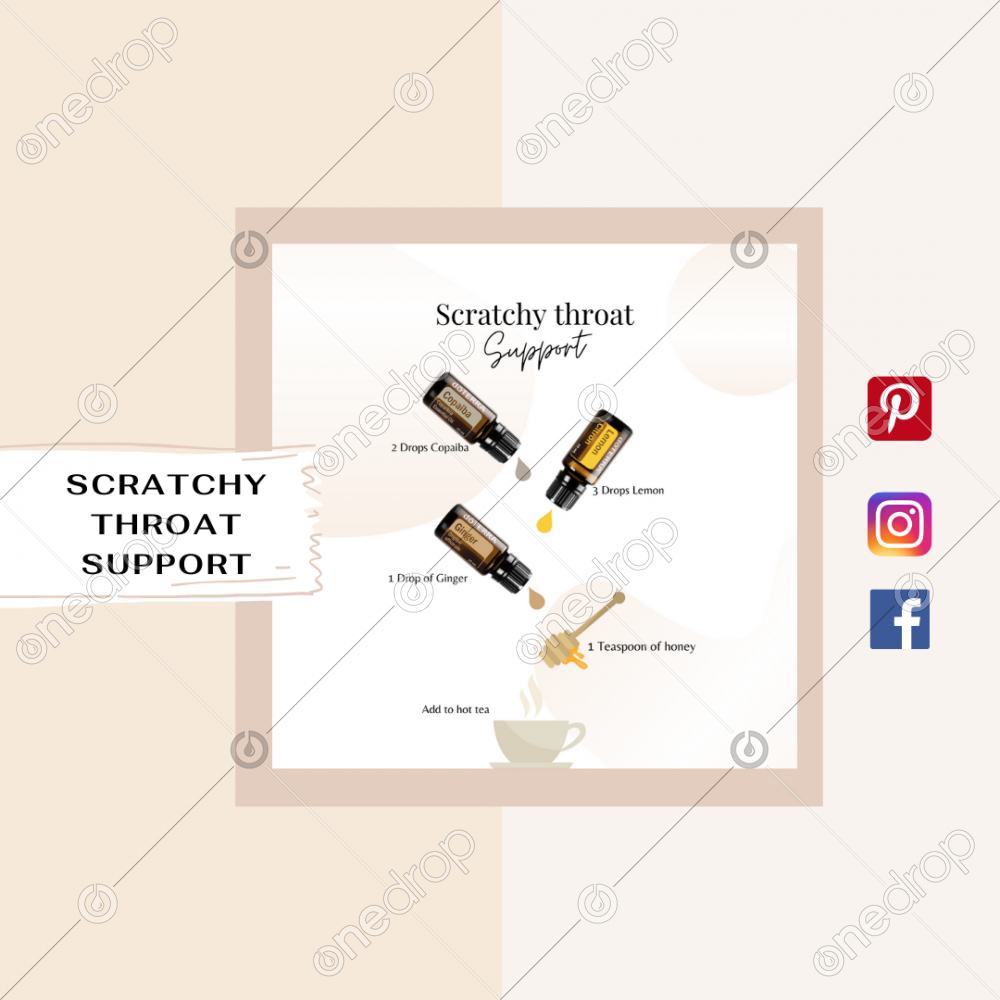 add 1 drop of Ginger, 2 drops Copaiba, and 3 drops of Lemon to a teaspoon of honey. Take from the spoon or add to hot tea.