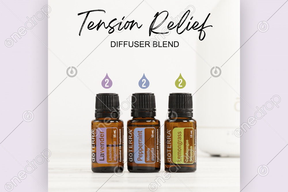 High resolution square picture of the Tension Relief diffuser blend featuring Peppermint + Lavender + Lemongrass.