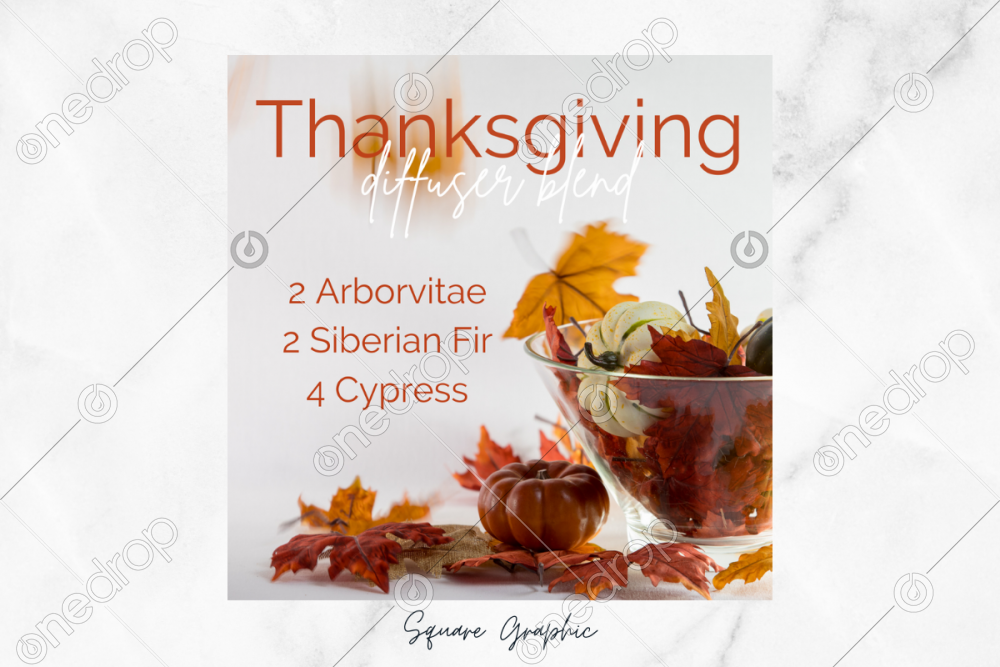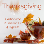 A lovely Thanksgiving diffuser blend of Arborvitae, Siberian Fir, and Cypress.