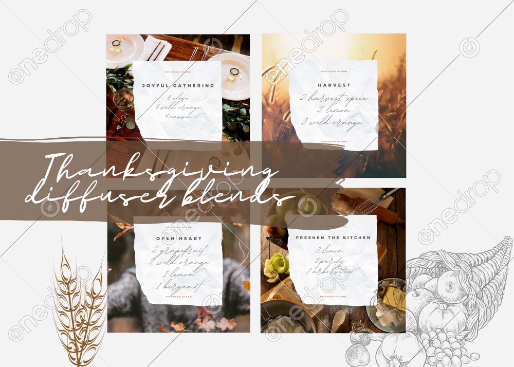 Four square format Thanksgiving diffuser blend recipes: