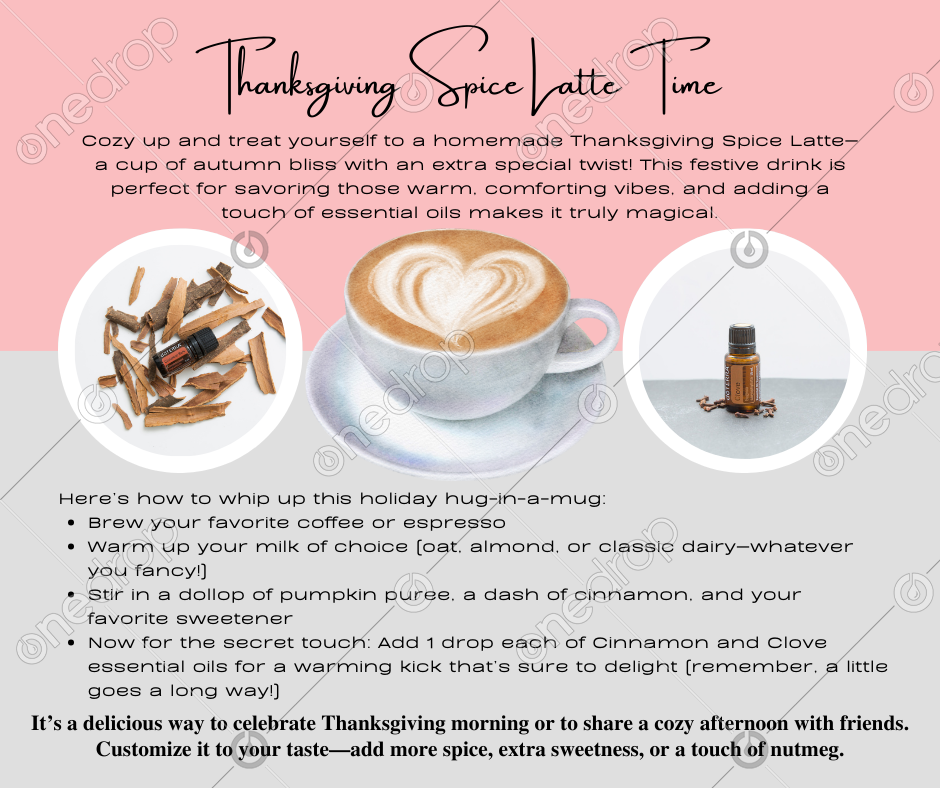 Cozy up and treat yourself to a homemade Thanksgiving Spice Latte—a cup of autumn bliss with an extra special twist! 🎃✨ This festive drink is perfect for savoring those warm, comforting vibes, and adding a touch of essential oils makes it truly magical. ✨