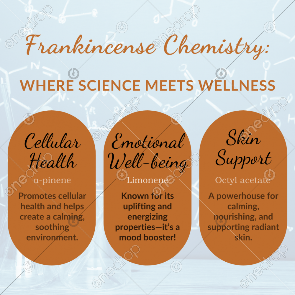 Frankincense’s benefits come from its unique chemical makeup: