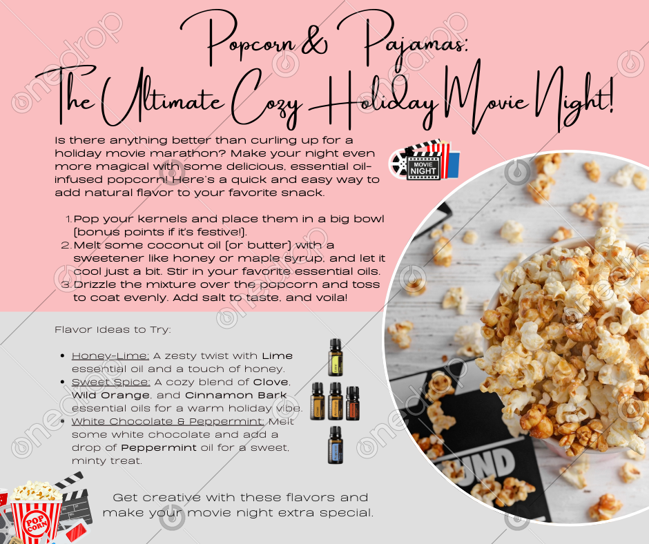 Is there anything better than curling up for a holiday movie marathon? Make your night even more magical with some delicious, essential oil-infused popcorn! Here’s a quick and easy way to add natural flavor to your favorite snack. 🌟