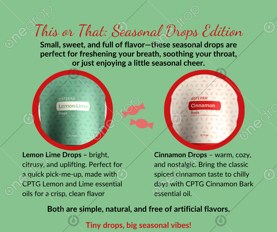 Lemon Lime Drops – bright, citrusy, and uplifting. Perfect for a quick pick-me-up, made with CPTG Lemon and Lime essential oils for a crisp, clean flavor.