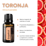 Imagen en formato cuadrado para publicación de Instagram y Facebook, con los beneficios del aceite esencial de Toronja - Grapefruit.