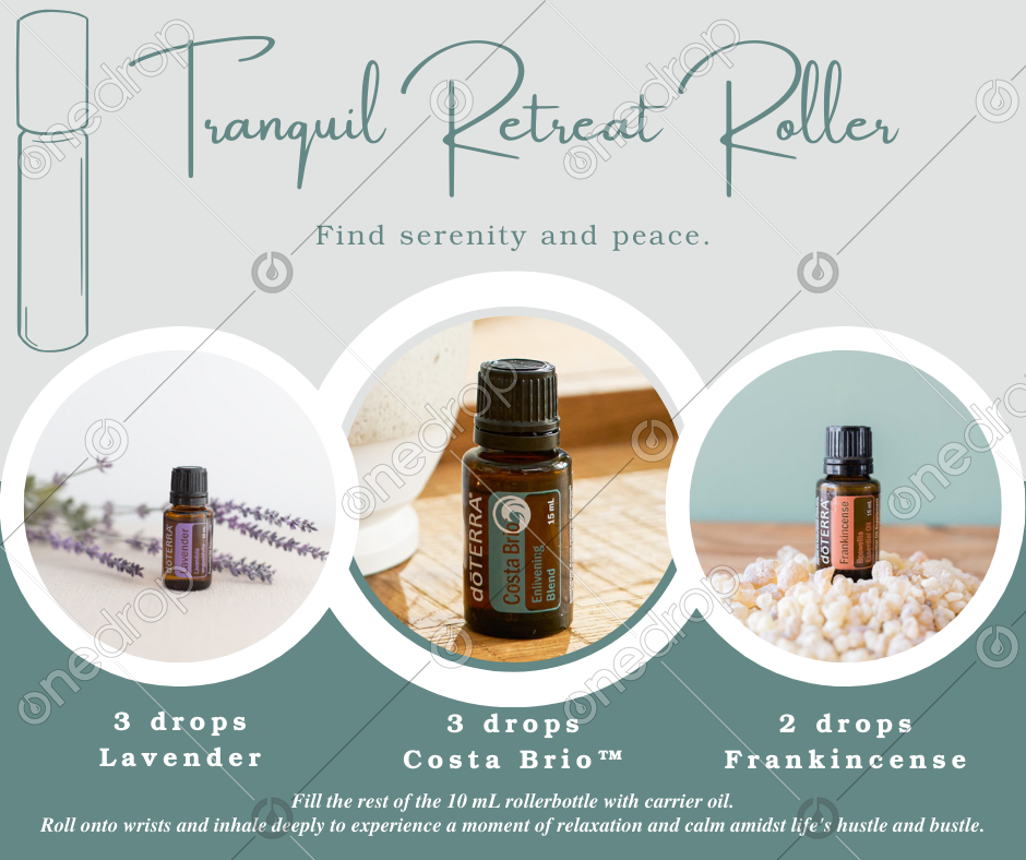 Indulge in tranquility with our Tranquil Retreat Rollerbottle Blend. 🌿✨ Blending the calming essence of Costa Brio, Lavender, and Frankincense, this roller is your ticket to serenity wherever you go. Just roll onto your wrists and inhale deeply for instant relaxation. Ahh, serenity now! 🌸🌟