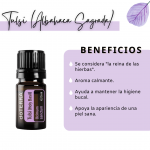Imagen en formato cuadrado para Post de Instagram / Facebook con los beneficios del Aceite Esencial de Tulsi [Holy Basil] - Albahaca Sagrada.