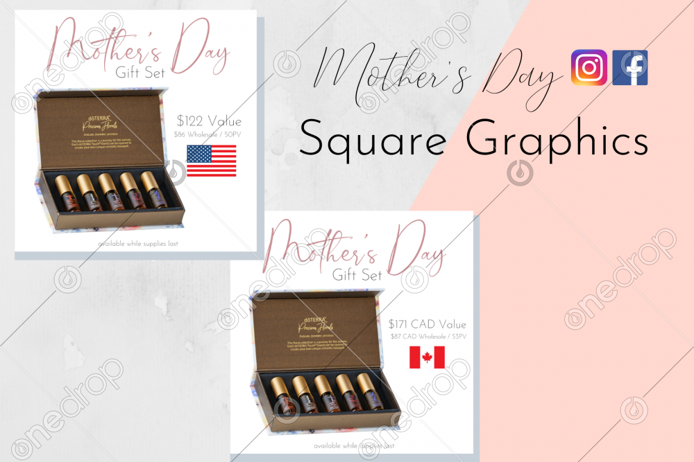 Square promo graphics showing the Mother's Day Promotions.