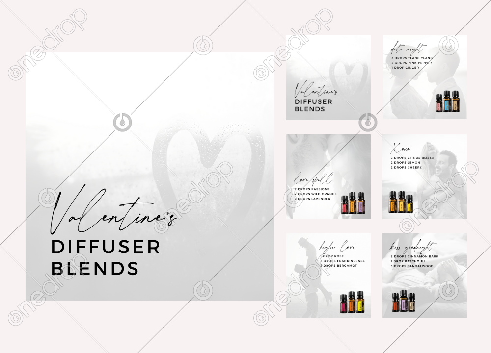 6 Square Posts with Valentine's Day Diffuser Blends.