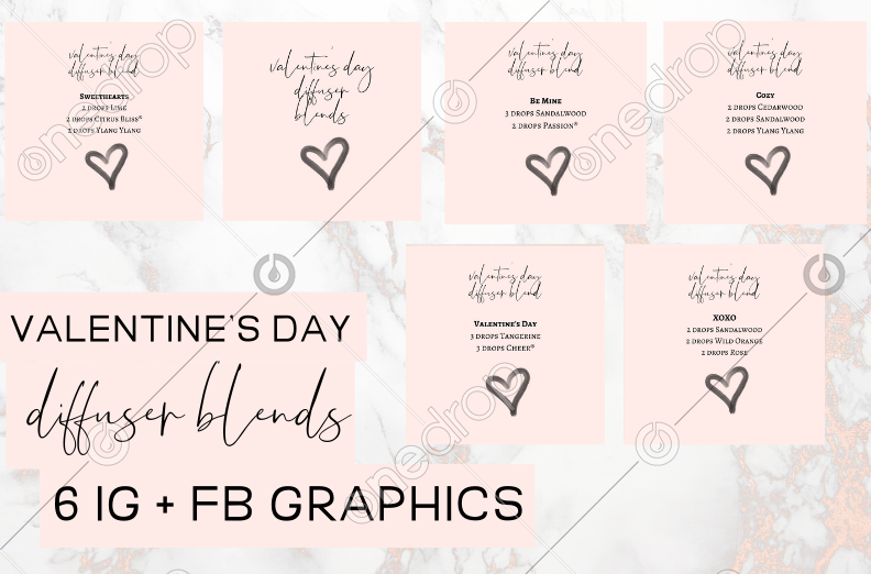 Valentine's Day Essential Oil Diffuser Blends Social Media Graphics. Now available for Instagram and Facebook.