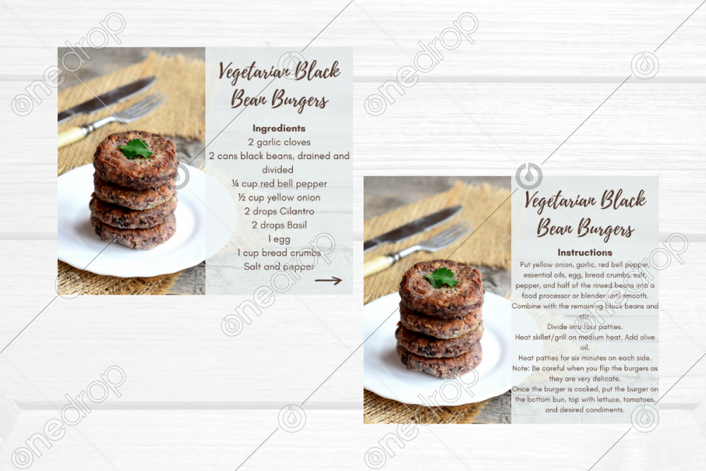 Social media image with vegetarian black bean burgers recipe