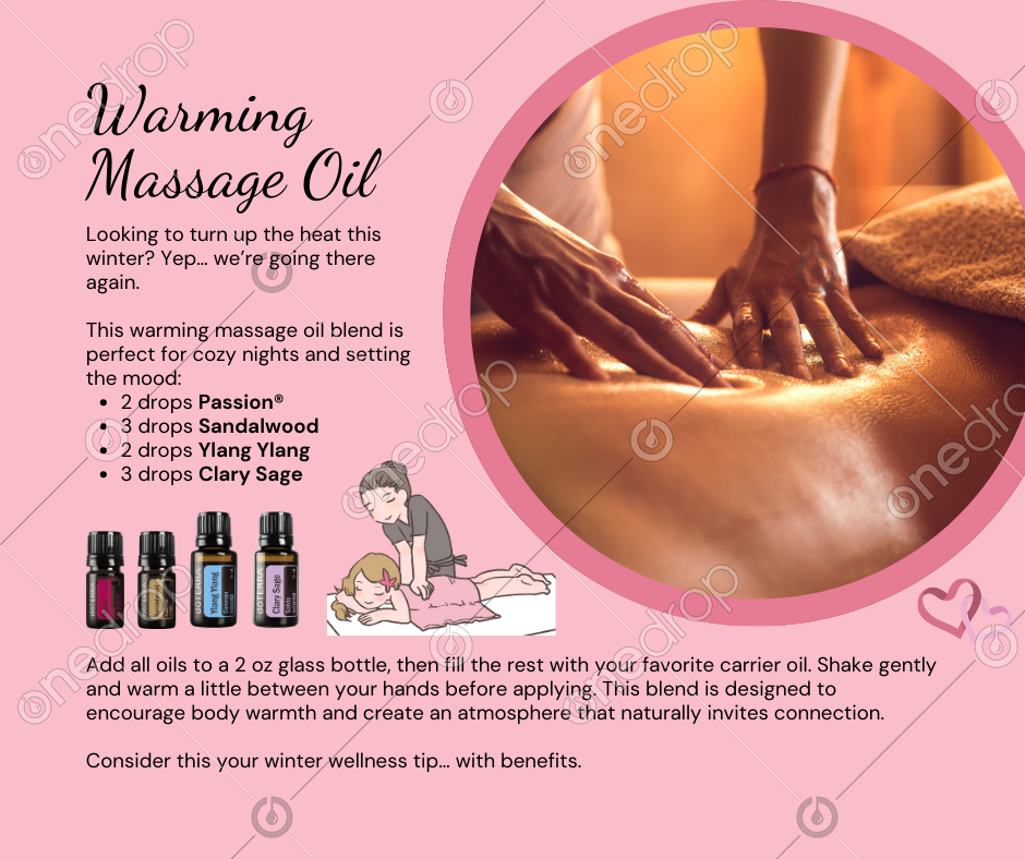 This warming massage oil blend is perfect for cozy nights and setting the mood: