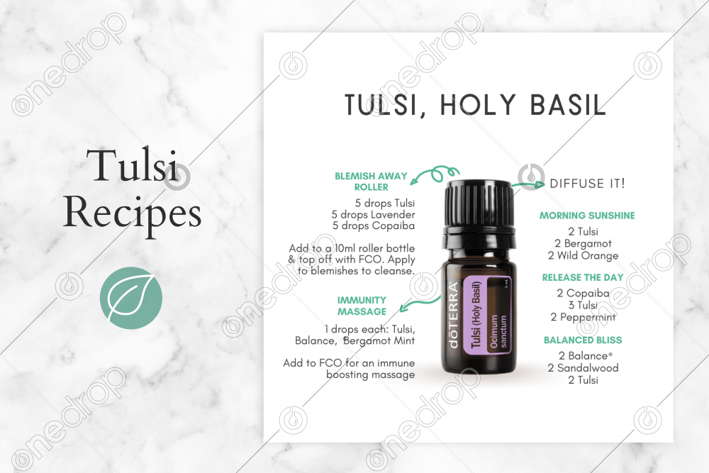 Includes diffuser blends and recipes using Tulsi, Holy Basil.