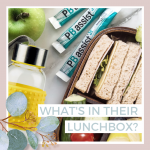 - Background Lifestyle image of a lunchbox, water bottle, and green apple