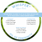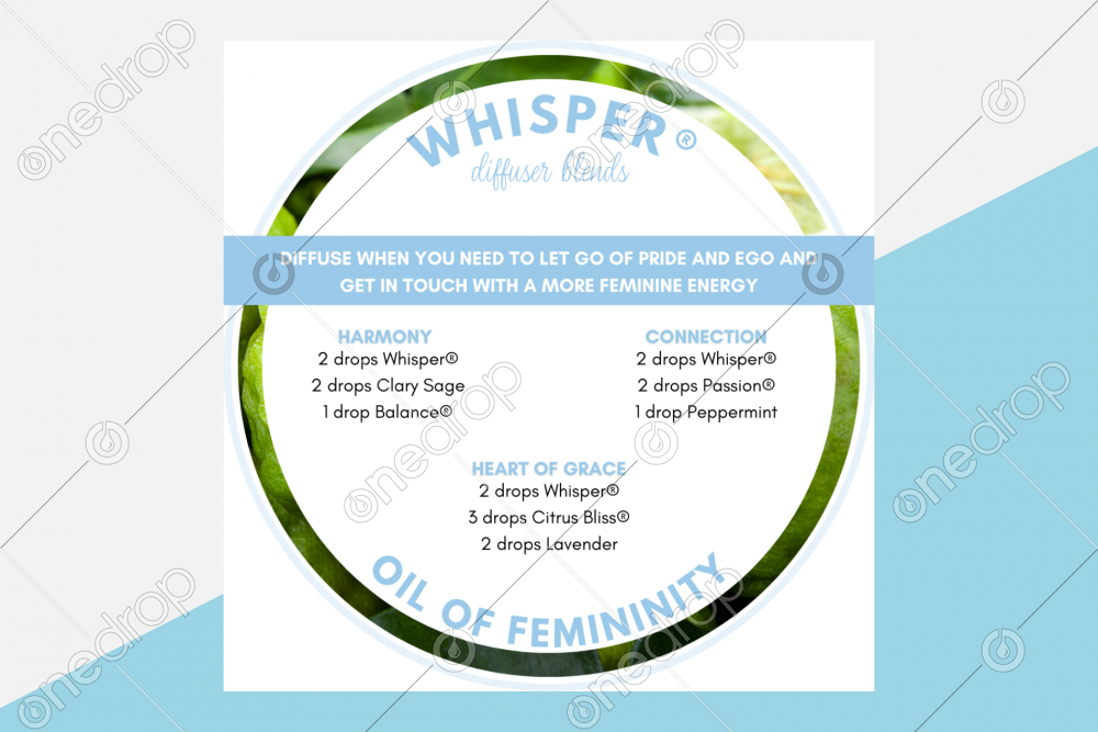 Whisper Diffuser Blends. Includes when to use, emotional significance (Oil of Femininity) and three Whisper diffuser blends to try. Save the entire Emotions Collection here: https://www.onedropdesigns.com/collections/?sharecollection=MzExMTE4NDAz Suggested photo uses: Social media posts Instagram stories Pinterest pins Blog post images E-book images Number of photos: 1
