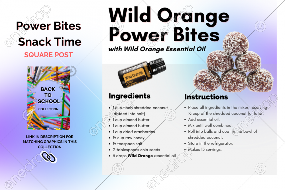 Life is busy and constantly on-the-go. These nutrient-packed power bites are great for those days when you just need a little extra boost. They are made with Wild Orange essential oil will help keep your body full of energy during your busy day.