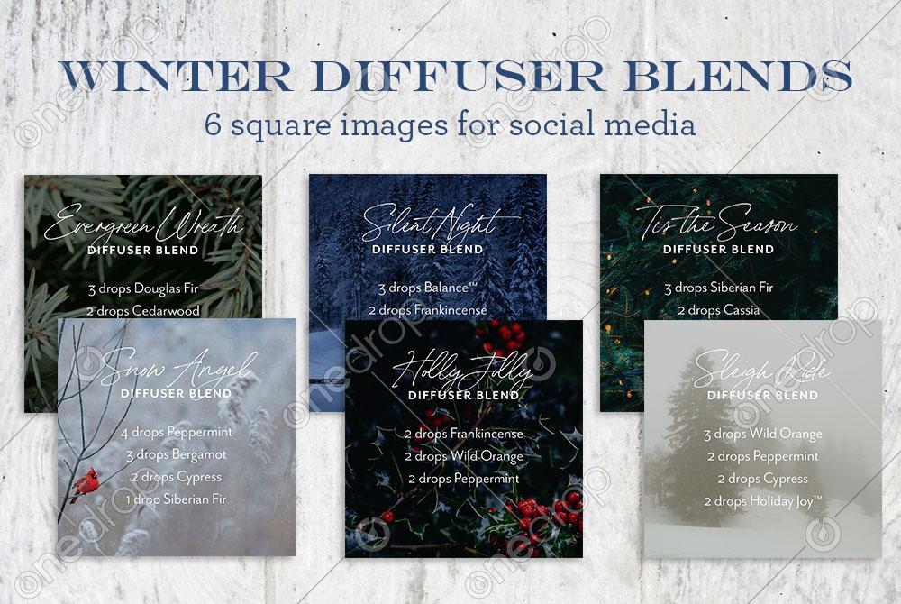 6 square images featuring beautiful photography that coordinates with the diffuser blend theme.