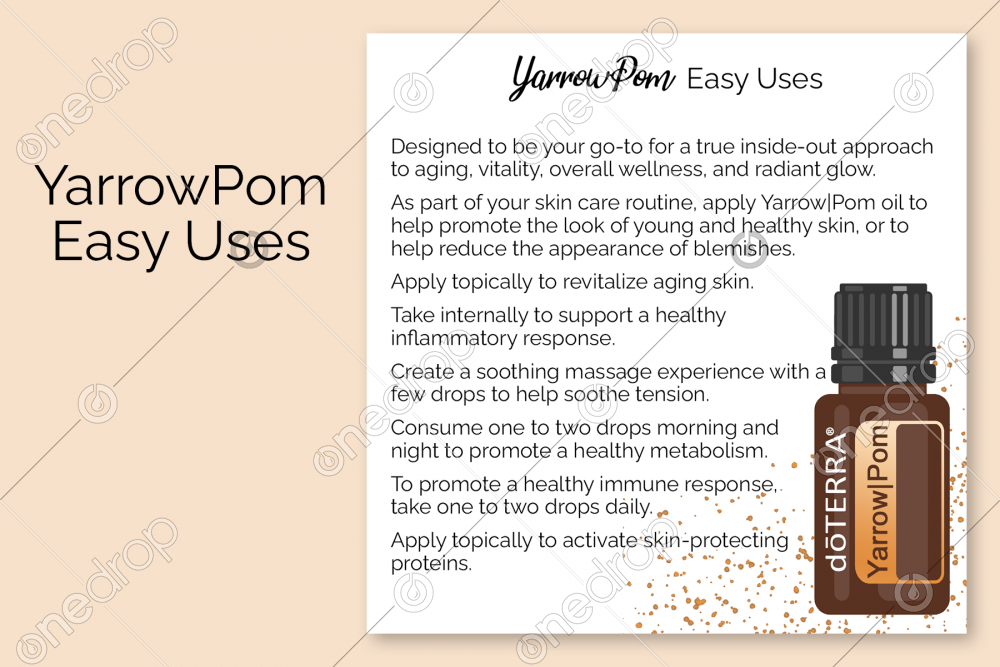 This image features easy uses for Yarrow|Pom with illustrated oil bottle. 📌Please make sure to watermark images with your name/logo to protect your investment and make sure One Drop contributors are fairly compensated for their work. Kindly direct your sharers back to One Drop to download their own 😀