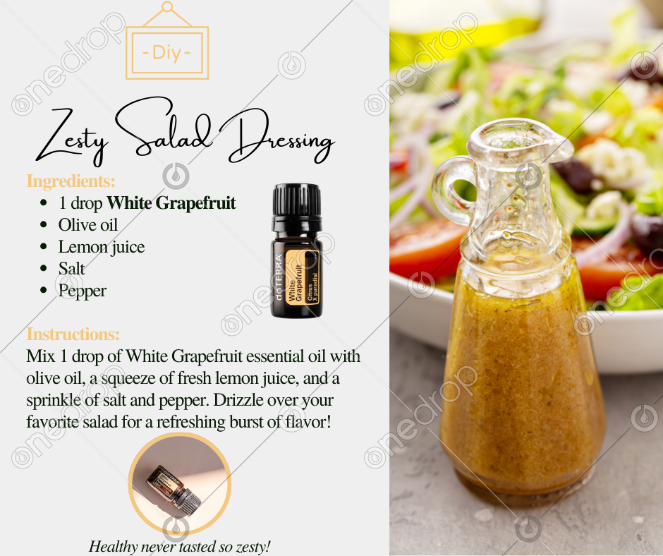 Spice up your greens with this light and tangy dressing! 🥬✨ Mix 1 drop of White Grapefruit essential oil with olive oil, a squeeze of fresh lemon juice, and a sprinkle of salt and pepper. Drizzle over your favorite salad for a refreshing burst of flavor! 🍊
